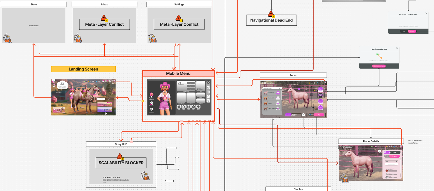 The audit revealed that core gameplay loops were buried behind 4+ taps. Inconsistent "Back" button behavior frequently trapped users in deep sub-menus, creating logic dea