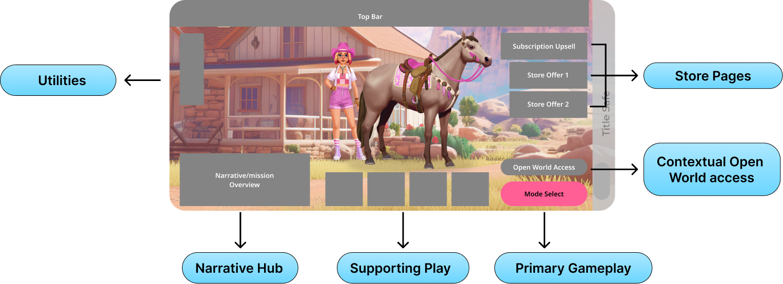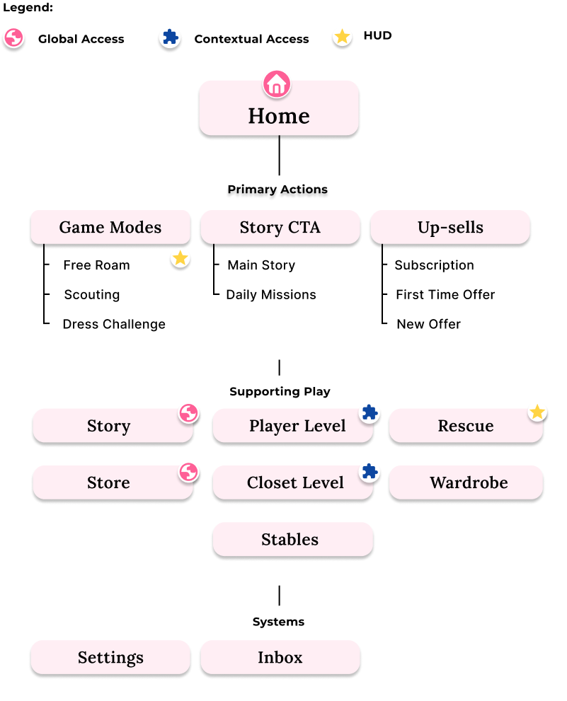 A Tiered Hub & Spoke Framework. To solve the 'Pogo-Stick' navigation issue, I developed a three-tier architecture that balances player immersion with critical business drivers.